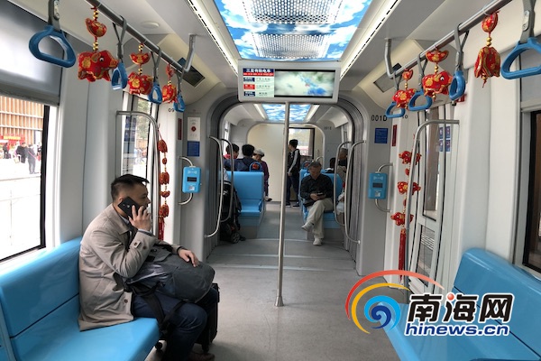 ?以藍天白云為設計主題的車廂,寬敞舒適的座位、清晰明了的顯示屏幕、專門的輪椅停靠位等細節都充分體現了人性化的設計。 南海網記者 劉子榕攝