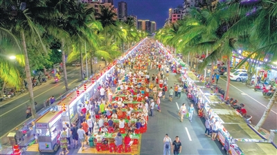 夜幕降臨,華燈初上,海口夜市便開始熱鬧起來。自2017年起,海口對外“求真經”對內“下苦工”,全力推進特色夜市建設工作,如今,已打造出一批廣受海口市民和國內外游客喜愛的靚麗“名片”。 其中,最有代表性的就是海大南門夜市、金盤夜市、海墾花園夜市、瓊臺福地夜市等。海墾花園夜市大小攤位200余個,匯集了全國各地的佳肴,從南到北、口味大不相同,本地味、川味、西北味、東北味……各種美味小吃讓人應接不暇。海大南門夜市是海口首個試行限時封閉市政道路用于夜市經營的項目,這里美食品種極多,除了粥粉面飯等主食類,還有燒烤、炸炸、牛雜以及炒冰、清補涼、海南糖水等甜點。金盤夜市門口的招牌十分氣派,濱海休閑風格的裝潢讓人感到十分舒適,除了海南本地的特色美食外,金盤夜市還有陜西、湖南、內蒙古、重慶等外地特色美食,品種十分豐富。瓊臺福地夜市是海口最具有當地特點的夜市,其建筑是結合府城多年的歷史文化特點進行改造的,是海口美食新坐標之一。試想在這古色生香的地方吃著美味無比的食物,所謂品古城韻味,用各地美食,豈不快哉?