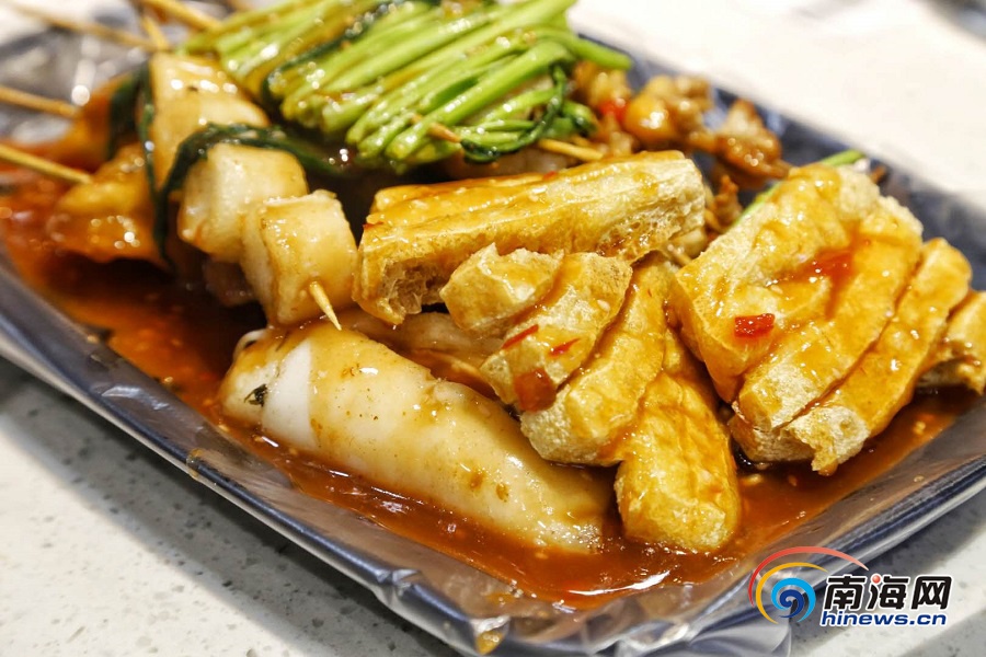 “母親每天都要早起去市場挑選最新鮮的食材,我們店主打的炸炸有培根金針菇、鵪鶉蛋、雞翅膀、牛肉丸、空心菜、三角豆腐等等,很受顧客的歡迎?!睆埲憬榻B,不同攤位的炸炸醬汁各有千秋,味道也有所不同,而母親秘制的醬汁是他們店里炸炸美味的源泉。