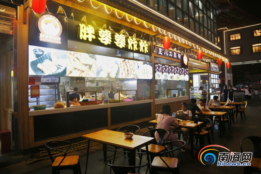 “母親一直想繼續賣炸炸,很多老顧客也在找我們,但一直沒有找到合適的門店?!睆埲阏f,直到她聽說了秀英區要打造“雙創”重點項目——尋常里夜市,母親便在這里租了一個小門面,重新張羅起了炸炸生意,并給店鋪取名為“胖婆婆炸炸”。