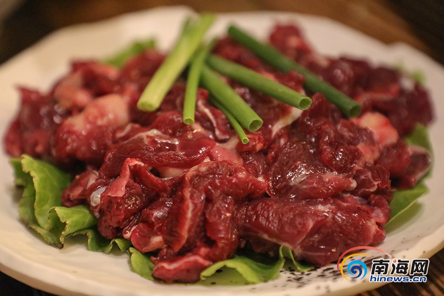 好味道是餐廳的立足之本。梁曉輝介紹,店內選用的牛肉為定安黃牛、水牛,均是當天宰殺后從定安運送到海口,以保證食材的新鮮。牛焰餐廳的主打菜有鮮牛肉、鮮牛肝、鮮牛雜、炸牛排等,共有近60種菜品。