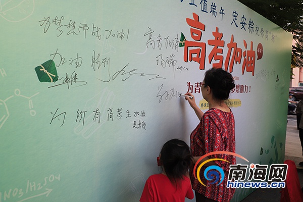 市民在高考加油的簽名墻上留下對高考學子的祝福語。南海網記者 黃祥 攝