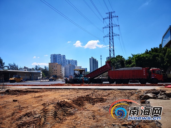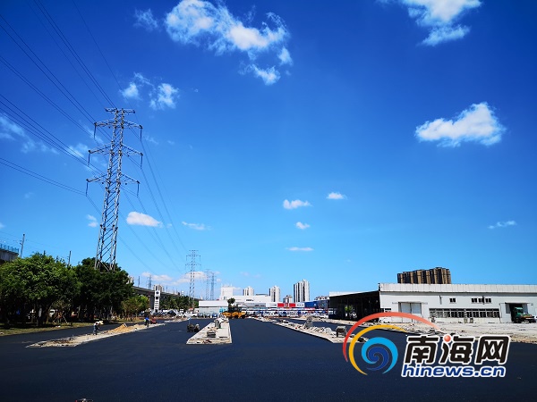秀英站的公交車站臺道路瀝青已經鋪設完畢。南海網記者 蘇靚 攝