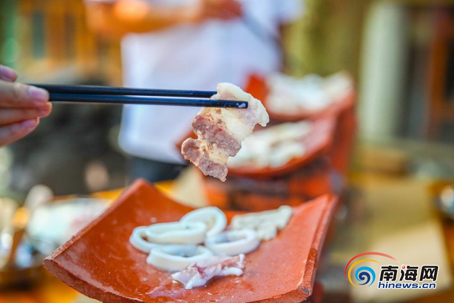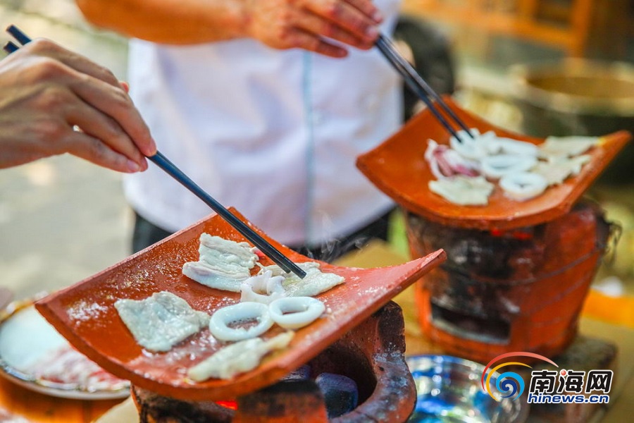 海南旅游頭條、南海網、南海網客戶端海口7月23日消息(海報集團全媒體中心記者 張茂)近日,在海南海口一家農家樂,廚師在展示越南“新奇”烤肉做法,吸引眾人圍觀。