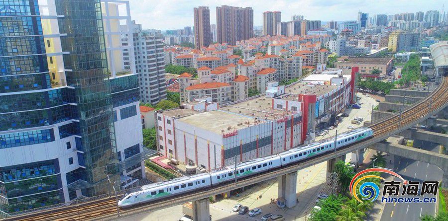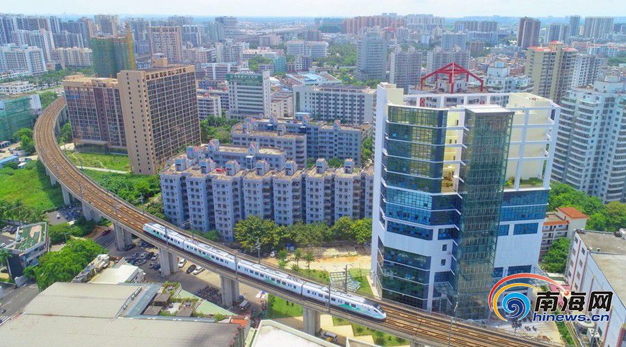 8月28日,一列市域列車經過海口市南海大道路段。海報集團全媒體中心記者 張茂 攝