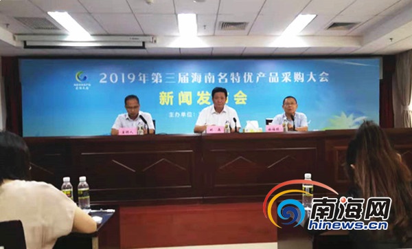 海南旅游頭條、南海網、南海網客戶端海口9月16日消息(南海網記者 任桐)9月16日下午,海南省商務廳在省政府辦公大樓舉辦2019年第三屆海南名特優產品采購大會新聞發布會。南海網記者從會上獲悉,本次采購大會將于9月19日至21日在海南國際會展中心舉行,截至目前,已有來自省內、外367家企業近1500人參會。