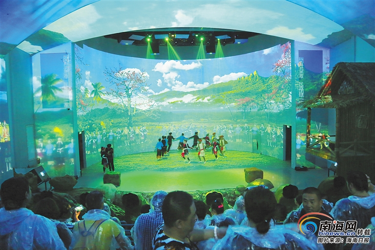 10月1日上午10點(diǎn),“風(fēng)雨情深”迎來(lái)首批游客,場(chǎng)內(nèi)人氣爆棚。全息空間成像技術(shù)與民族歌舞完美融合,交織成美輪美奐的熱帶海島風(fēng)情畫卷。