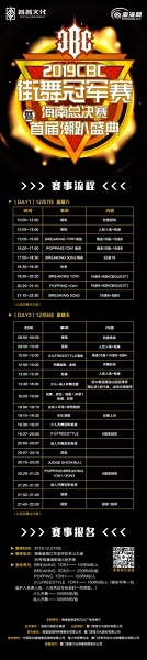 據(jù)介紹,CBC街舞冠軍賽從2010年第一屆CBC全球華人街舞冠軍賽至今,一直都是中國街舞的頂級交流平臺,不論是規(guī)模還是規(guī)格上都達到了世界頂尖水平。2019CBC街舞冠軍賽海南總決賽面向全國街舞愛好者進行征集,賽事為期兩天。賽事項目包括BREAKING(1V1、3V3)海選、POPPING(1V1)海選、少兒freestyle海選、齊舞賽(少兒、成年),選手們將通過一次次舞力對決,用干凈利落的舞蹈動作和變幻莫測的舞步釋放青春正能量,炸翻全場。
