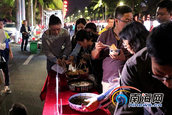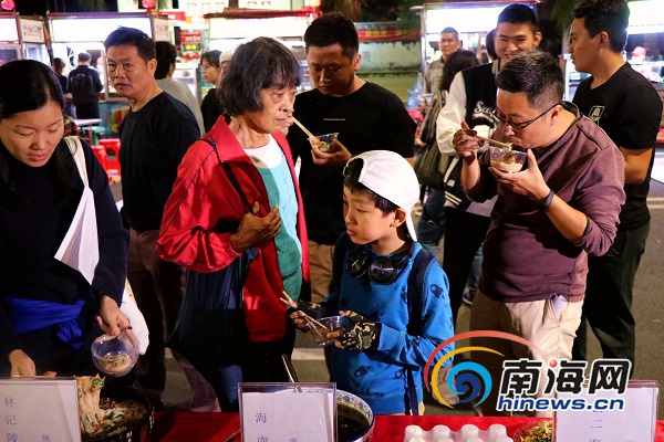 “久居海南,聽說海大南門夜市的小吃不錯,就過來試試。”評審團成員孫先生告訴記者,他老家在陜西,來海南多年,他表示海大南門夜市的衛生環境良好,美食品種多樣,秩序井然,是吃貨們品嘗美食的好去處,“而且這里的小吃很地道,吃完就想著下次啥時再來”。