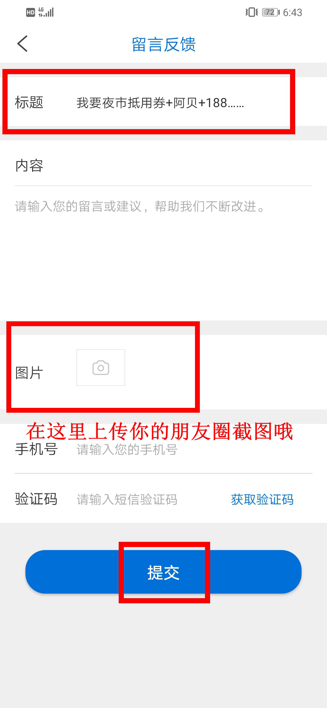 第二步:打開南海網客戶端,點擊右上角,進入留言反饋頁面填寫:“我要夜市抵用券+姓名+電話”,并將朋友圈分享截圖上傳,提交后即可成功參與活動!