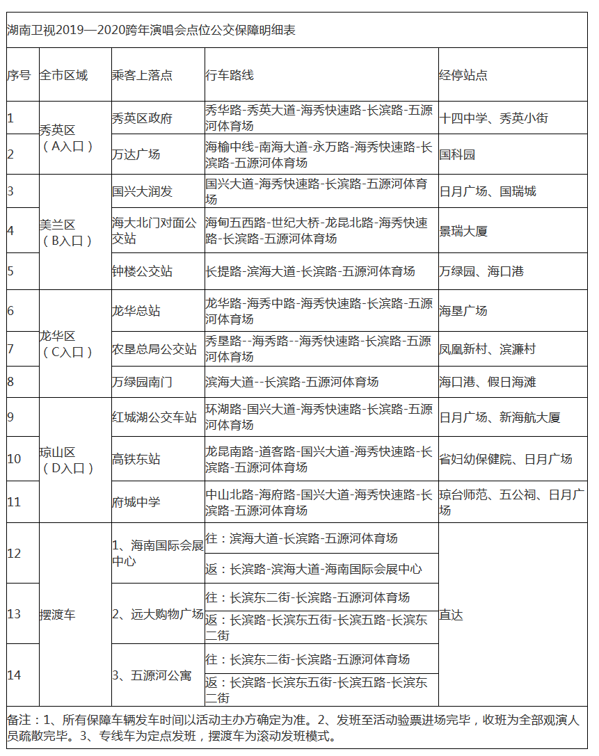 附:湖南衛視2019—2020跨年演唱會點位公交保障明細表