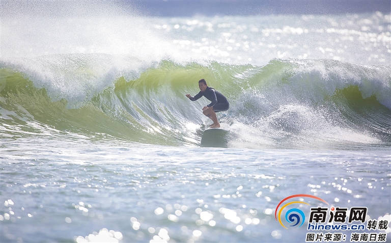 在日月灣馳騁浪尖的“浪人”。海南日報記者 袁琛 攝