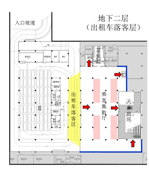 圖3 負(fù)二層(落客層)出租車(chē)流線