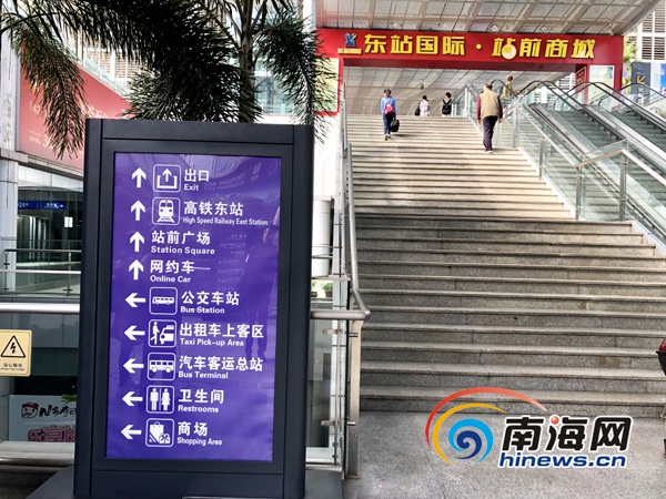 高鐵東站、海汽客運(yùn)總站、東站公交樞紐站換乘指示圖。南海網(wǎng)記者 陳麗娜 攝