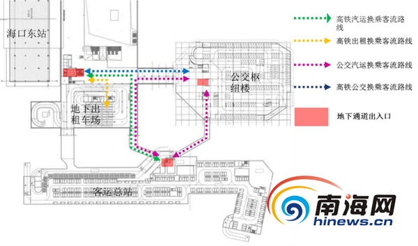五、高鐵東站、海汽客運(yùn)總站、東站公交樞紐站換乘流線