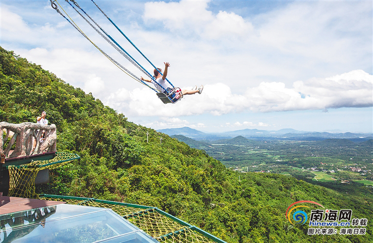 游客在呀諾達景區體驗秋千項目。武昊 供圖