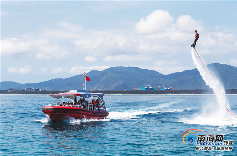 ?近日,游客在三亞蜈支洲島景區體驗水上飛人項目。武昊 供圖