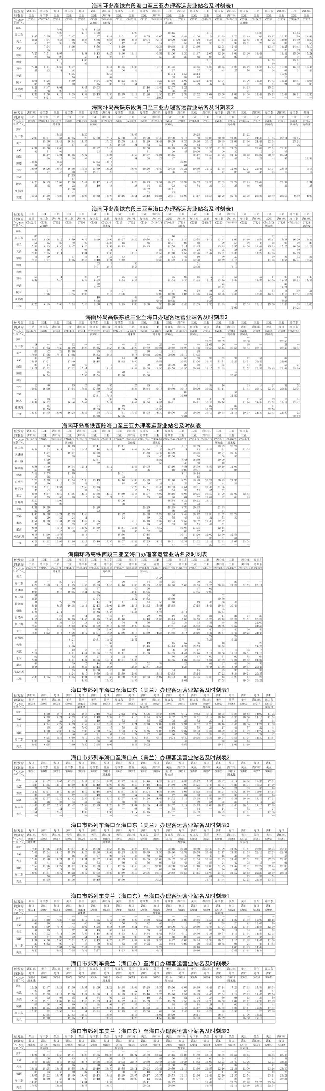 據了解,海南環島高鐵新列車運行圖開行“C”字頭動車組列車45.5對,其中東段本線車29對,三亞至三亞環島列車9.5對,海口東至海口東環島列車7對,較舊圖增加2對東段本線車。新圖分為日常圖和周末圖。日常圖開行動車組列車33.5對,其中海南環島高鐵東段本線21對,三亞至三亞環島列車6.5對,海口東至海口東環島列車6對,周末圖開行動車組列車36.5對,其中海南環島高鐵東段本線21對,三亞至三亞環島列車9.5對,海口東至海口東環島列車6對。