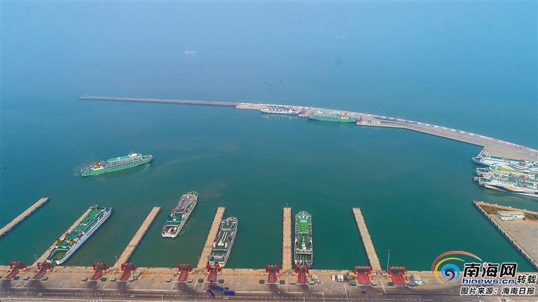近日,高空俯瞰建成后的海口新海港二期項目。該項目位于粵海鐵路輪渡南港碼頭防波堤北側(cè),新海港區(qū)防波堤內(nèi)側(cè),建設(shè)8個1萬噸客貨滾裝泊位及相應(yīng)的配套設(shè)施,設(shè)計年通過能力為汽車100萬輛次、旅客600萬人次。海南日報記者 張茂 攝