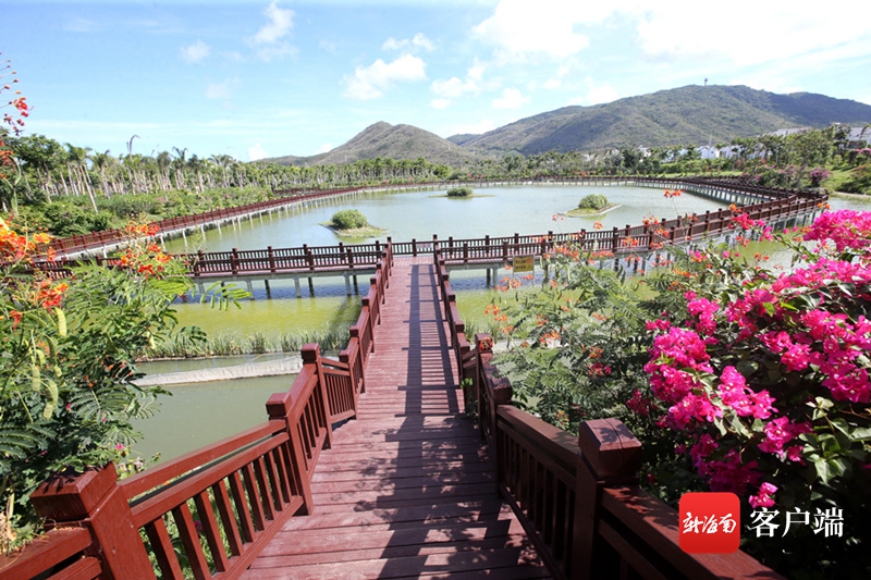 “走向我們的小康生活”采訪團走進三亞博后村哎呷湖。 記者 陳望 攝