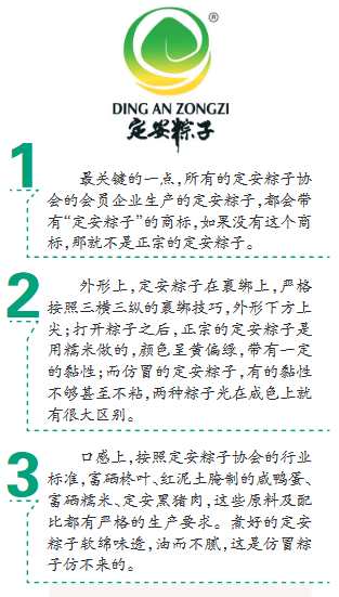 那么問(wèn)題來(lái)了,怎樣辨別哪些才是正宗定安粽子?對(duì)此,定安粽子協(xié)會(huì)會(huì)長(zhǎng)王沸健提供了三個(gè)快速識(shí)別正宗定安粽子的方法。