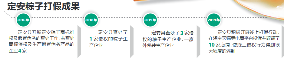 引導(dǎo)和監(jiān)督獲得“定安粽子”商標(biāo)授權(quán)的生產(chǎn)企業(yè)在粽子產(chǎn)品包裝上規(guī)范印制“定安粽子”商標(biāo)的文字和圖案,提高品牌的辨別度和形象度;