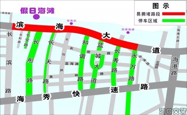 2、當天交警部門將視車流量適時交通管制疏導,如濱海大道假日海灘、觀海臺路段交通流量將會增多,請東往西方向途經車輛繞行海秀快速路、海秀西路→海盛路、南海大道;西往東方向從粵海大道、長濱路、長彤路繞行南海大道、海秀快速路、海盛路→海秀西路返回市區。