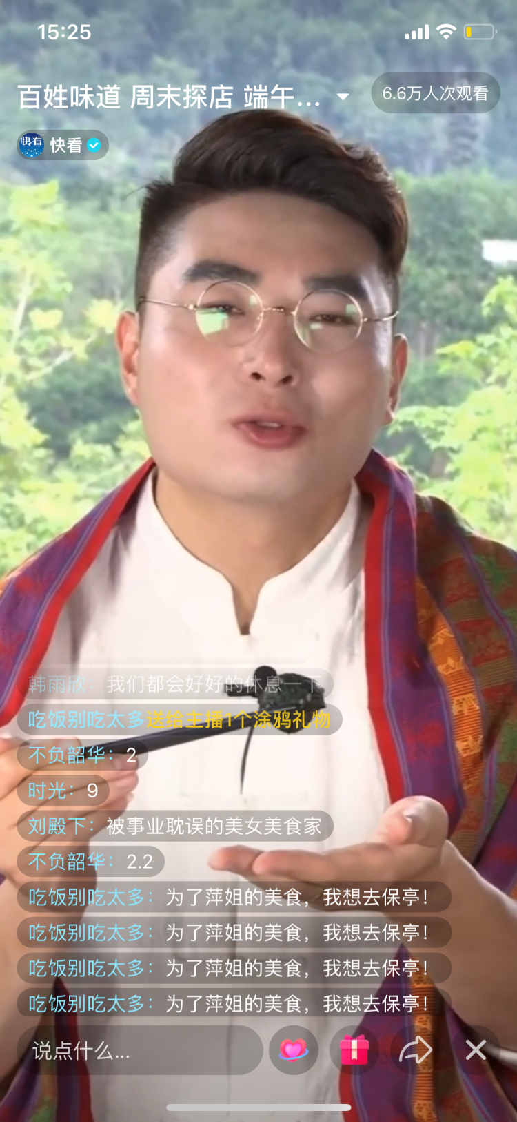“萍姐”風趣幽默、生動活潑的介紹,讓許多網友對美食心馳神往,垂涎三尺,網友紛紛在直播間里刷屏點贊。“好想吃”“野菜好吃”······網友好評不斷,更有網友大呼“為了萍姐的美食,我想去保亭”。