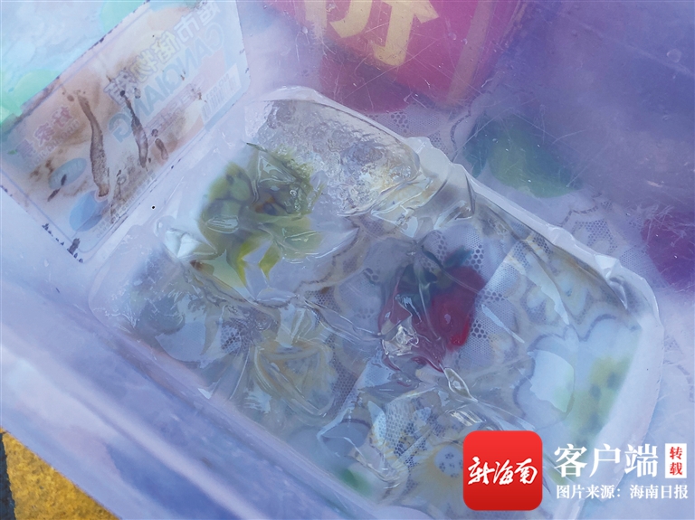 放在保溫箱里的狀如果凍的薜荔涼粉。 海南日?qǐng)?bào)記者 陳耿 攝