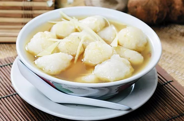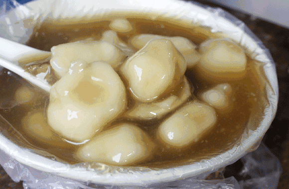 甜薯奶很神奇,別看名字里面有個“奶”字,它里面只有甜薯沒有奶,奶白色其實來自于米。將甜薯糊和米漿攪拌均勻后下鍋,煮出一鍋白玉般的胖丸子,最后再加上古早味紅糖和辛辣的生姜,品嘗甜辣混合的奇妙口感。