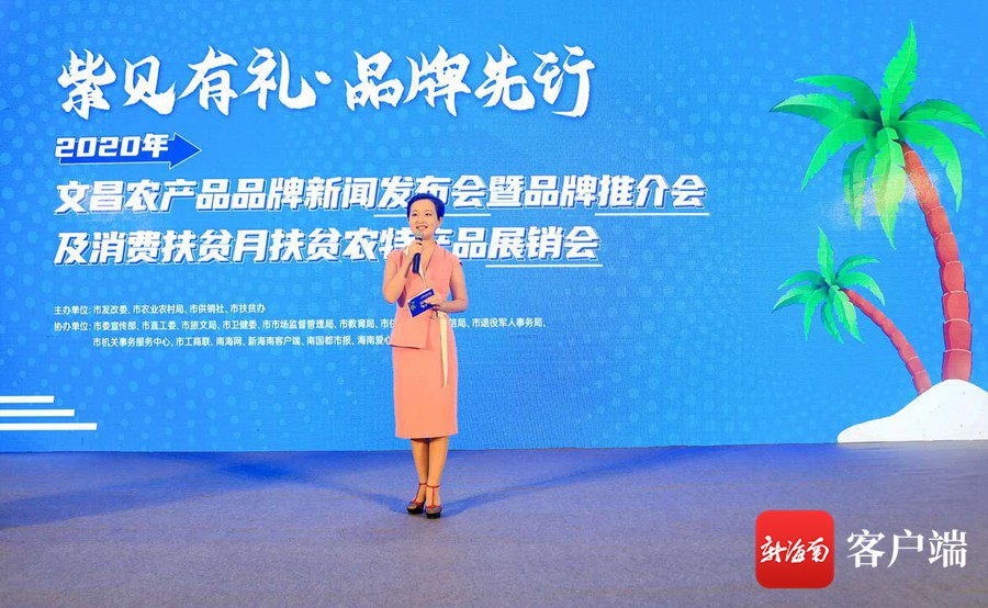 9月26日上午,紫貝有禮·品牌先行——2020年文昌農(nóng)產(chǎn)品品牌新聞發(fā)布會(huì)暨品牌推介會(huì)及消費(fèi)扶貧月扶貧農(nóng)特產(chǎn)品展銷會(huì)在文昌金石國(guó)際大酒店舉行。(活動(dòng)主辦方供圖)