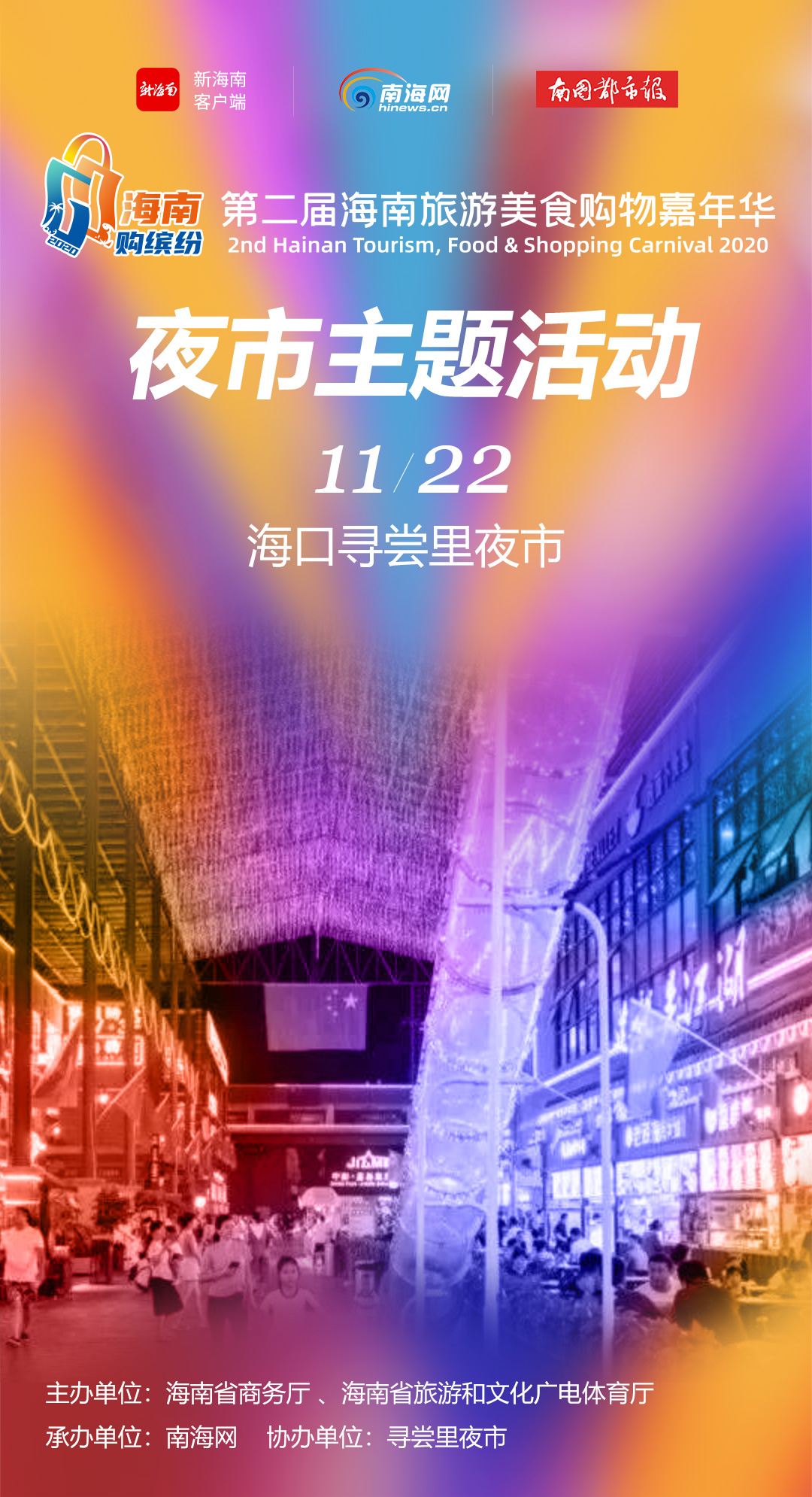 新海南客戶端、南海網(wǎng)、南國都市報11月20日消息(記者 韓星)這個周末干點啥?走,逛夜市去!2020第二屆海南旅游美食購物嘉年華夜市主題活動將于11月22日晚7時30分在海口尋嘗里夜市火熱開啟,現(xiàn)場不僅可以欣賞精彩表演,還能品嘗到商家推介的特色美食,更能參與666元霸王餐錦鯉抽獎,讓你免費吃到爽!