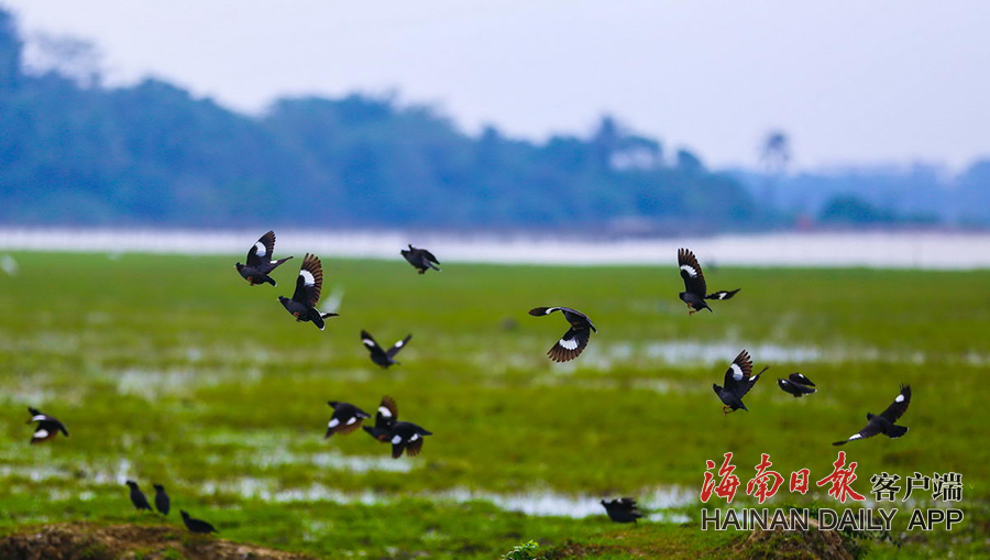 2020年12月9日,時下北方正寒冬,海南溫暖如春,過冬的候鳥紛紛飛來??跂|寨港濕地棲息、覓食。
