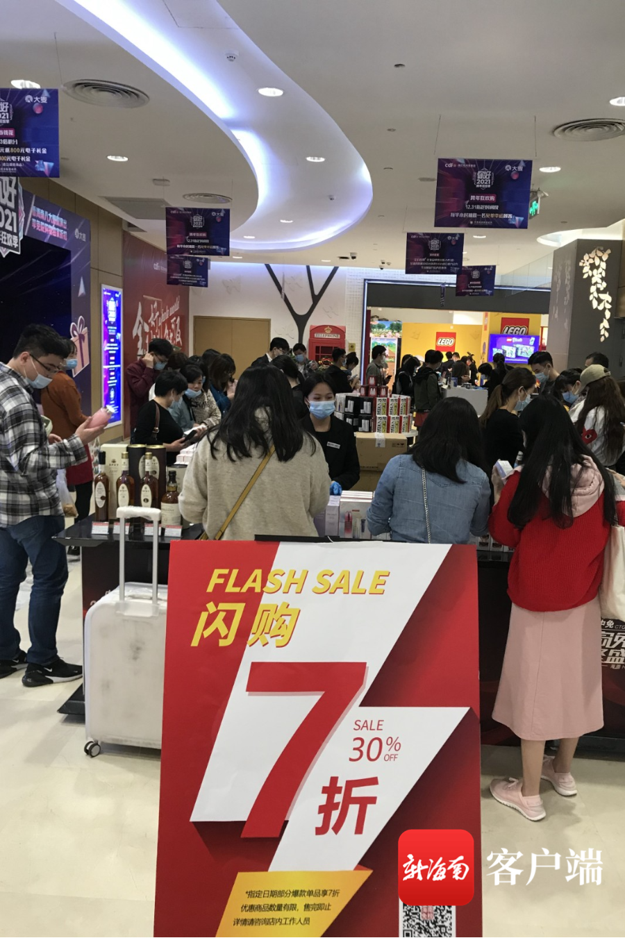 新海南客戶端、南海網(wǎng)、南國都市報12月28日消息(記者 陳衛(wèi)東)2020年即將過去,??谏碳壹娂娡瞥隹缒甏黉N活動,12月27日,記者在海口市區(qū)日月廣場免稅店看到,店內(nèi)人氣火爆,前來購物的市民游客在不少柜臺前排起了長隊。