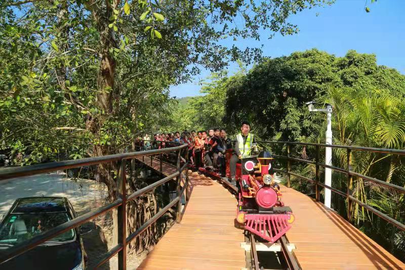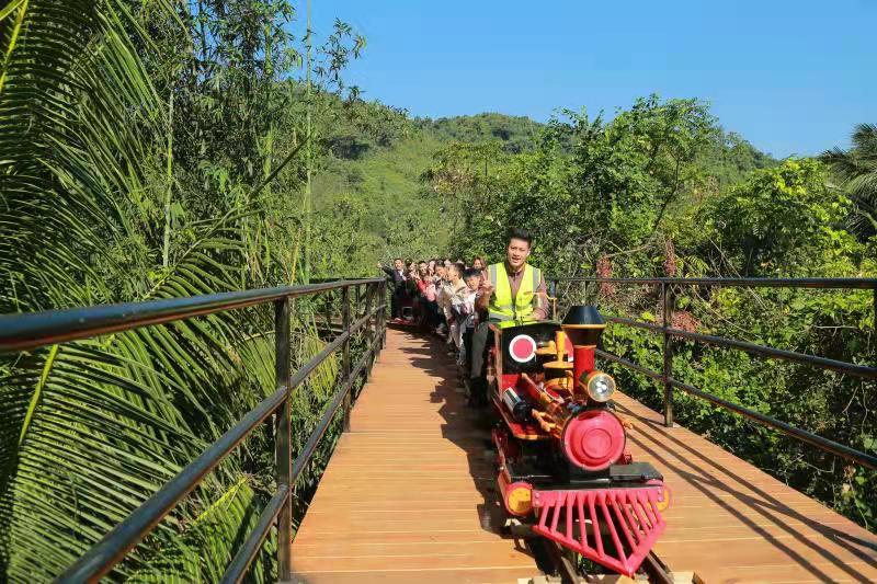 穿梭空中樂園,童話童趣童年樂。1月28日,海南島第一家空中有軌小火車項目在海南檳榔谷黎苗文化旅游區投入運營。這也是繼“熱帶風暴”“田野卡丁車”“飛林探巢”之后投放的第四個全新體驗項目,標志著檳榔谷景區轉型發展進入提速提質的關鍵階段。