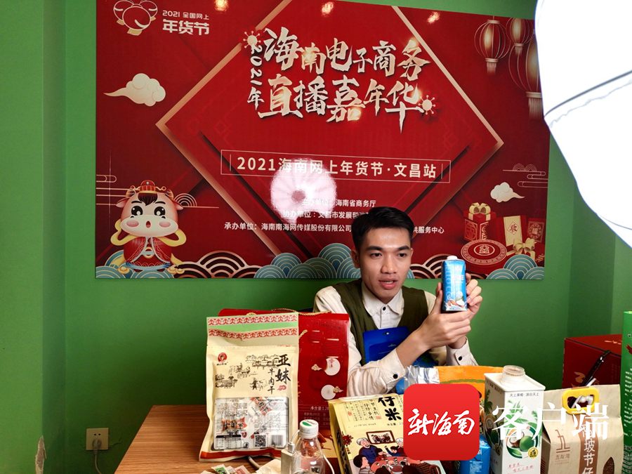2月1日,2021海南網上年貨節·文昌站正式開播,文昌本地企業椰嗨喃、張雄牛肉干、重興陳記、五龍灣、潮記文昌雞等,為廣大網友呈上精選優惠的海南年貨。文昌錦山張雄牛肉干是擁有百年歷史的海南特色小吃,最初是作為華僑遠行必備食物干糧的牛肉干,后漸漸發展成為海南著名的小吃和旅游伴手禮。2月1日,海南本土網紅“麥意”為直播間的粉絲們帶來了張雄牛肉干牛年禮盒首發驚喜,一上線便開啟了拼手速秒殺模式,吸引了近6000人次觀看,銷售額超7000元。