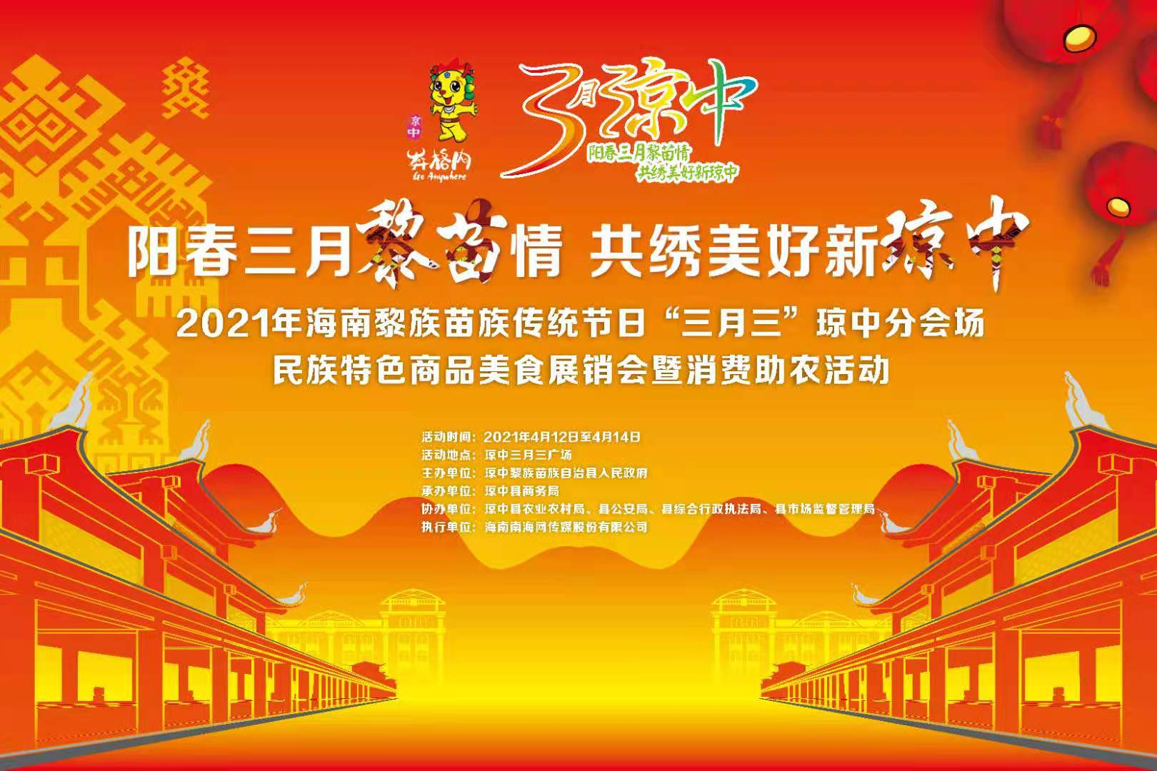“三月三”瓊中分會場民族特色商品美食展銷會暨消費助農活動,將于4月12日至14日,在瓊中三月三廣場將持續狂歡三天,為廣大群眾傾情奉獻一場美食饕餮盛宴。