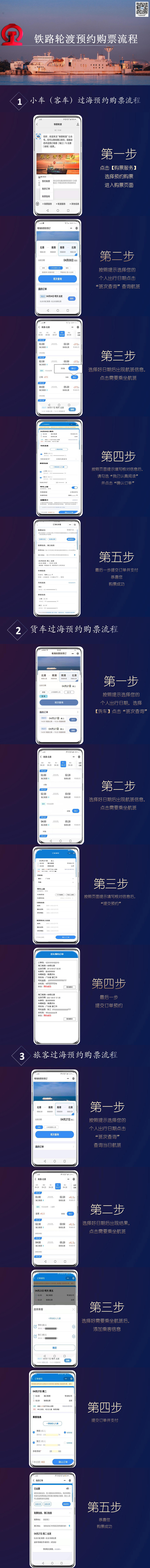 答:可以關(guān)注“瓊州海峽輪渡管家”及“新海港”“鐵路輪渡”微信公眾號,根據(jù)出行計(jì)劃提前在線上預(yù)約購票;也可以通過攜程、同程、椰城市民云等第三方平臺提前辦理購票手續(xù)。