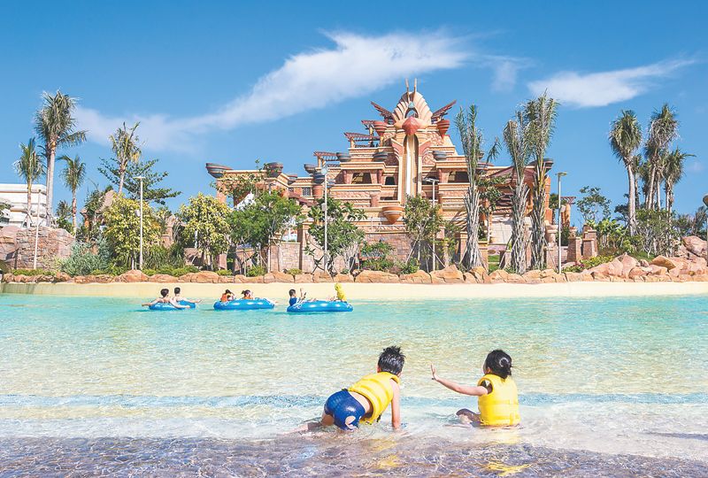 海洋文化是一大特色,注有1.35萬噸天然海水的大使環(huán)礁湖,擁有逾280種淡水和海水動(dòng)物。建有“失落的空間”水族館,游客可觀賞到鯊魚、鰩魚、水母、倒吊魚、海鱔和巨骨舌魚等逾280種生物,還可在潛水項(xiàng)目中與異域海洋生物共舞。