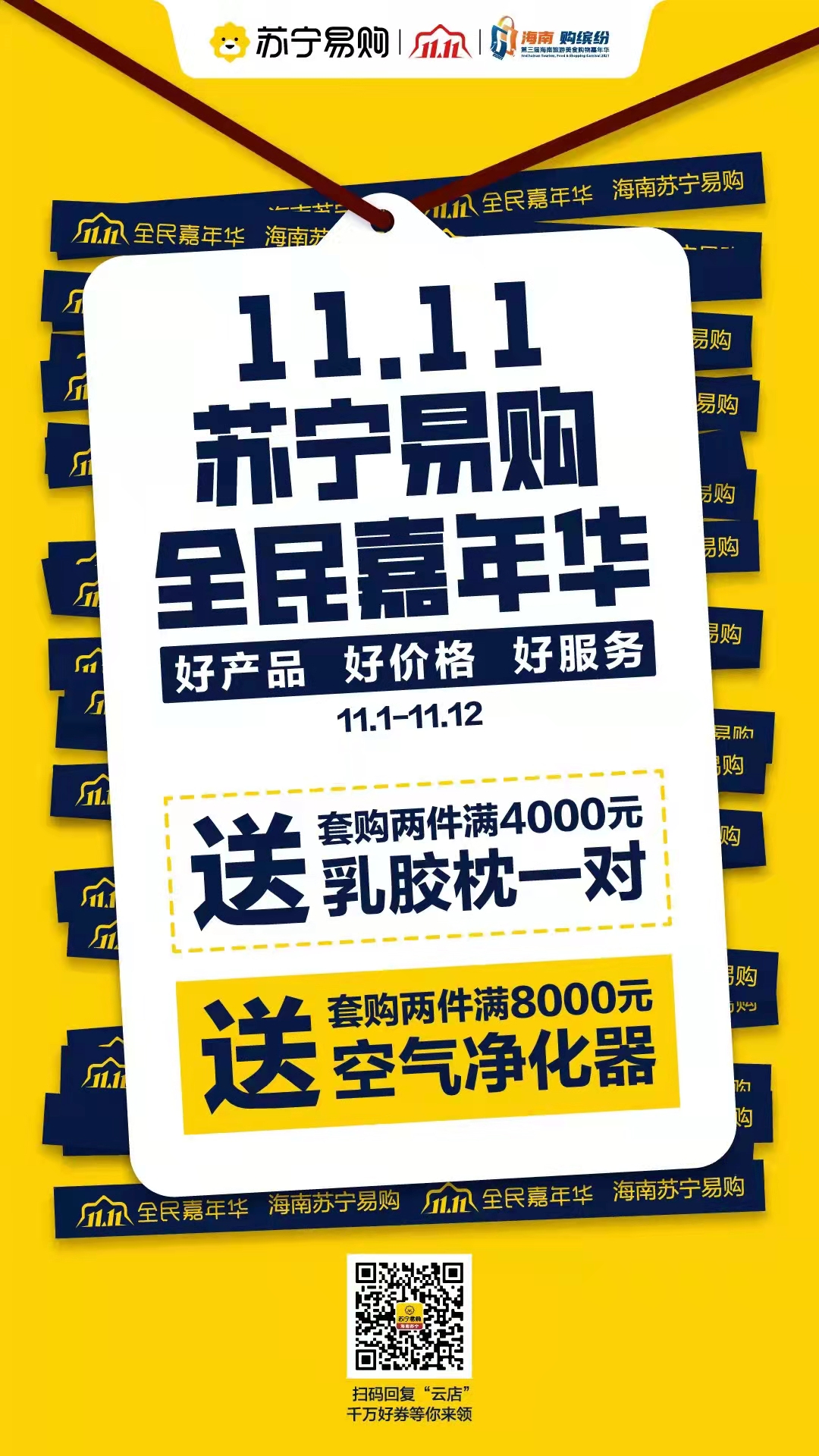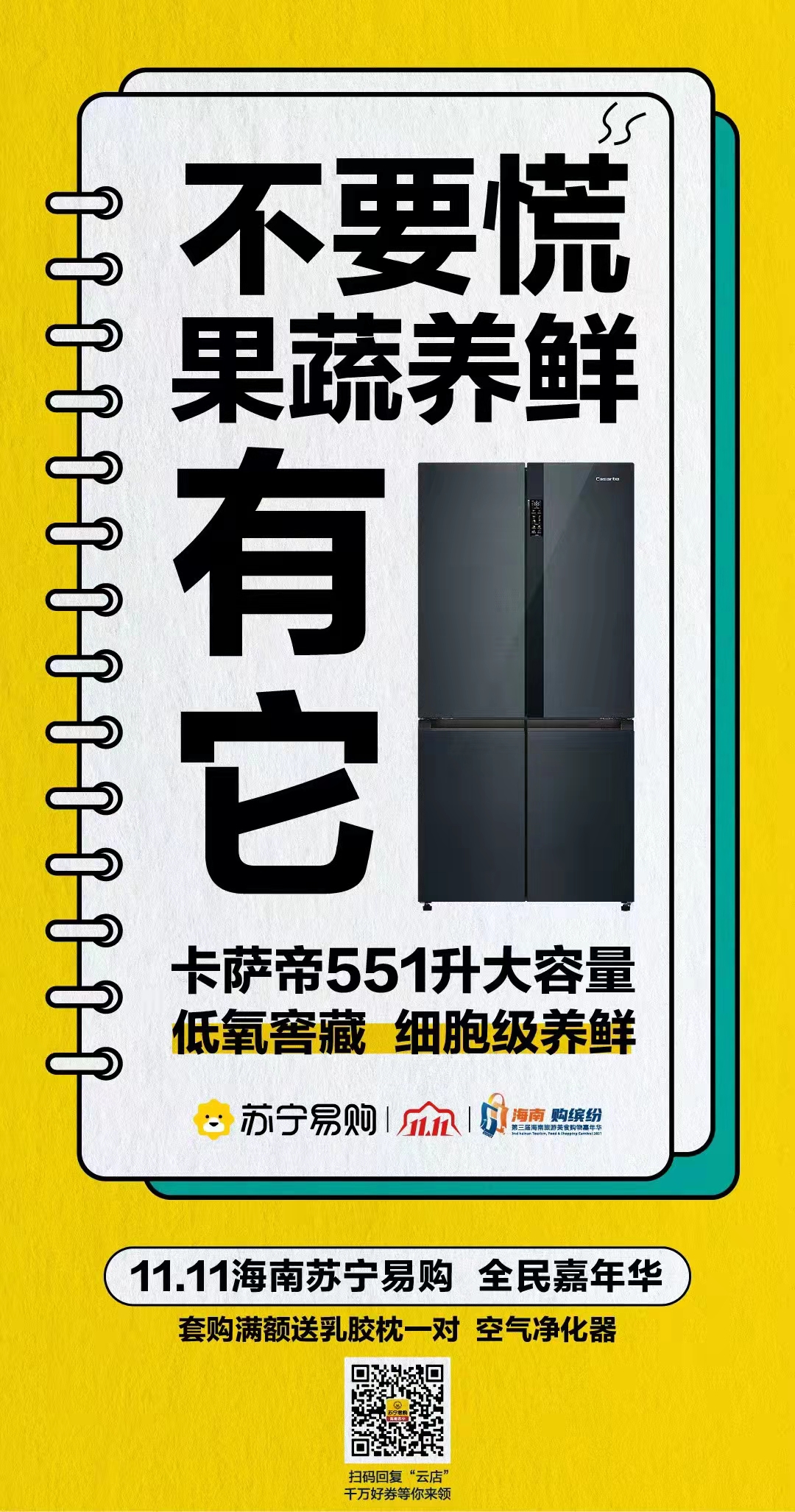 新海南客戶端、南海網(wǎng)、南國都市報11月2日消息(記者 韓星)2021第三屆海南旅游美食購物嘉年華活動期間,聯(lián)盟商家海南蘇寧易購?fù)瞥?1.11全民嘉年華促銷優(yōu)惠活動,即日起至11月12日,多款爆款品牌家電立享活動價,進店顧客還能參與預(yù)存送好禮、預(yù)存砸金蛋、套購送好禮等優(yōu)惠。具體促銷信息如下: