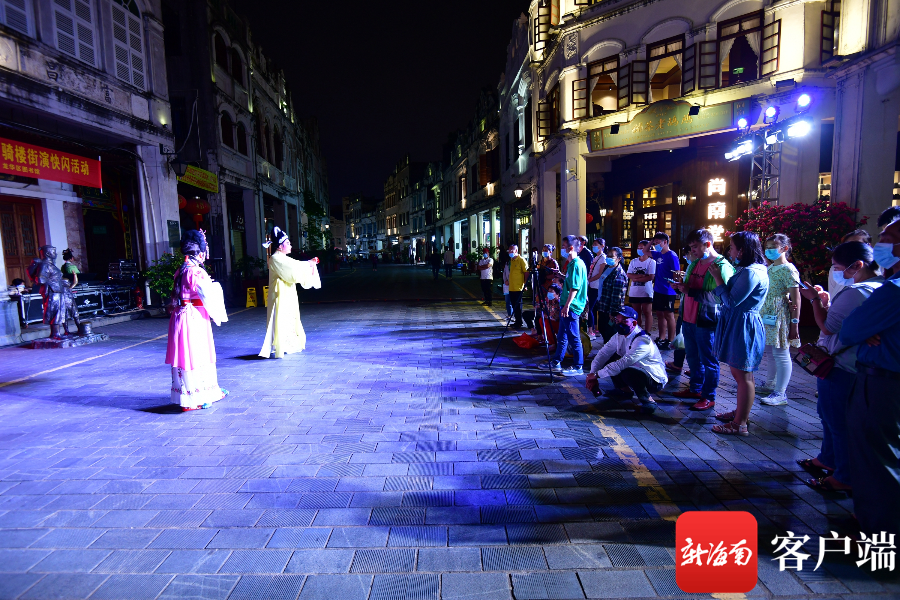 ?新海南客戶端、南海網(wǎng)、南國都市報(bào)5月5日消息(記者 陳衛(wèi)東)5月4日晚,海口騎樓老街上演瓊劇精品劇目,吸引不少市民和游客駐足欣賞。人們?cè)谟斡[老海口風(fēng)光的同時(shí),還近距離體驗(yàn)到海口的文化魅力。