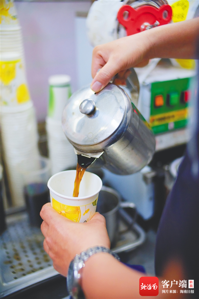 但無論如何,海南人的味蕾,總給涼茶留著一個角落。它經歷了一代代人的選擇和認證,構成了人們的集體記憶。“不信你看,晚上相聚吃燒烤的年輕人們,一手抓著烤串大快朵頤之際,另一只手大概率還拿著一杯散熱下火的涼茶。”梁昌平笑著說。