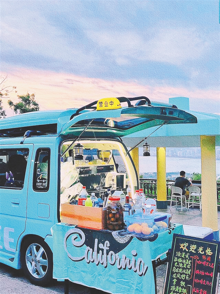 把咖啡店“裝”進(jìn)汽車后備箱里。海南日?qǐng)?bào)記者 李艷玫 攝