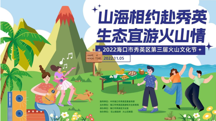 本次火山文化節以“山海相約赴秀英 生態宜游火山情”為主題,以火山的內在文化內涵結合外在生態景觀為亮點,打造秀英區“火山文化節”的專屬節慶IP,傳播火山地區民間文化;圍繞“石斛+美食+古村+山歌”等四大主題,打造“火山文化+鄉村旅游”相結合的文旅發展環境,從而提升火山文化品牌影響力,展現秀英區火山古村落的文化特色、民俗風情以及文化旅游特色。