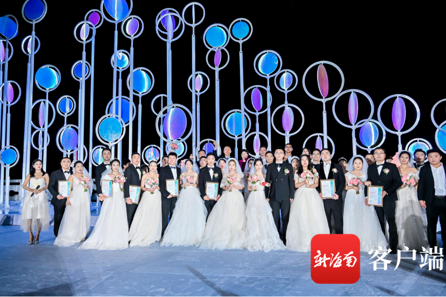 當(dāng)悠揚動聽的旋律響起,西裝筆挺的新郎牽著美麗大方的新娘,依次登場。他們臉上洋溢著幸福的笑容,在親朋好友和現(xiàn)場觀眾的祝福聲中,緩緩走向舞臺中央。錚錚誓言在天涯海角響起,大海、椰樹與來賓共同見證著他們的愛情故事。