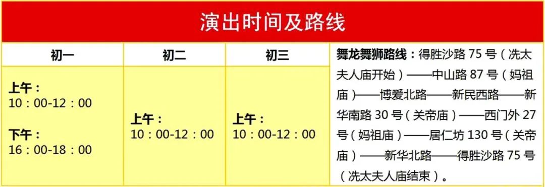 海南地方民俗冼夫人文化舞龍舞獅活動時間表及線路。海口市旅文局供圖