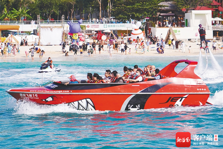 春節(jié)黃金周期間,蜈支洲島景區(qū)推出趣味“海上游”。海南日報(bào)記者 武威 攝