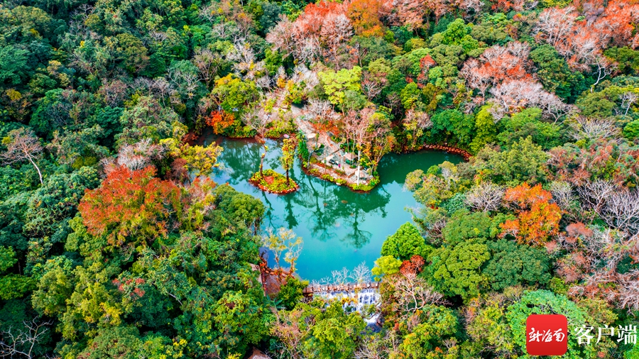 從空中俯瞰瓊中百花嶺景區百花天池。