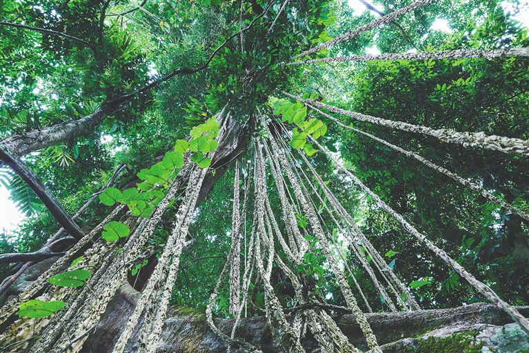百花嶺熱帶雨林文化旅游區,古樹與藤芋結合成獨特景觀。海南日報記者 李天平 攝