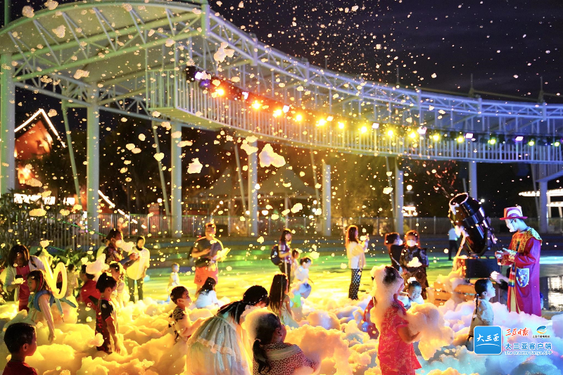 “三亞絲路歡樂世界推出的《紅色娘子軍》《瓊州阻擊戰》實景演出與豐富的游樂項目吸引更多人流量,與陜西旅游集團絲路歡樂世界(西安)項目遙相呼應。”陜旅(三亞)旅游投資有限公司總經理助理王海朋告訴記者,三亞絲路歡樂世界將旅游與城市文化、科技體驗、絲路文化全面融合,通過紅色實景演出、主題游樂、黨建研學,為來園游客提供中西合璧的“5A級”歡樂新體驗。